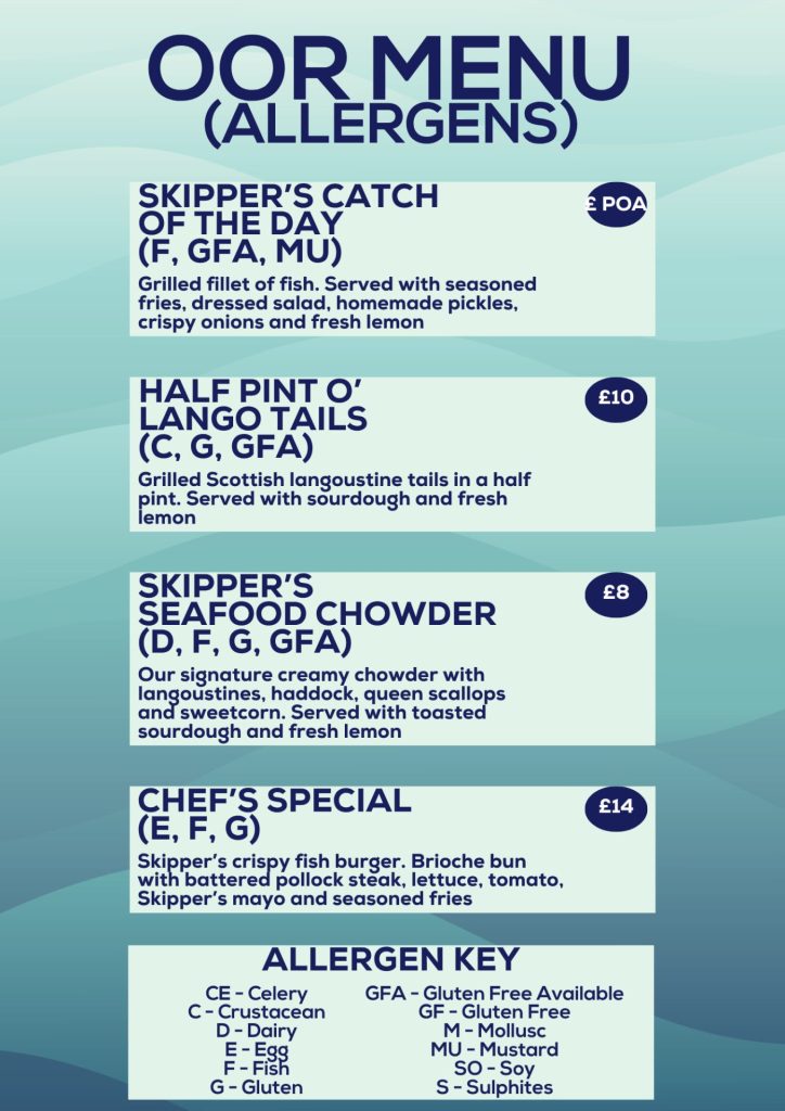 Skipper’s Scran Van Allergen Menu